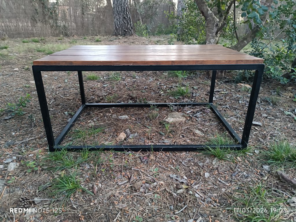 Base de madera y estructura de hierro